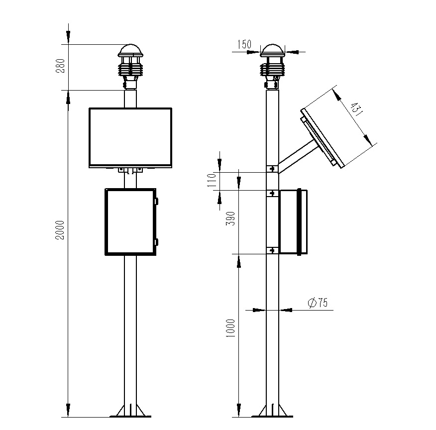 5、兩米碳鋼支架,頂部無需法蘭盤可直接套接傳感器